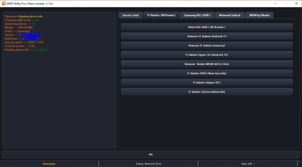 GCT KRDT Utility Pro is a powerful Windows-based mobile servicing tool designed for professional Android technicians. It provides an all-in-one solution for handling advanced mobile repair tasks such as MDM management, IT admin issue handling, network unlocking support, and Samsung KG related operations. The tool features a clean, fast, and user-friendly interface that helps technicians work efficiently without switching between multiple utilities.